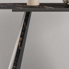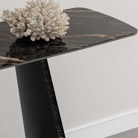 Piétement en métal laqué époxy noir brossé avec rappel de la céramique sur la tranche, plateau en céramique brillante TF7943 Nera 3mm sur verre trempé 8mm