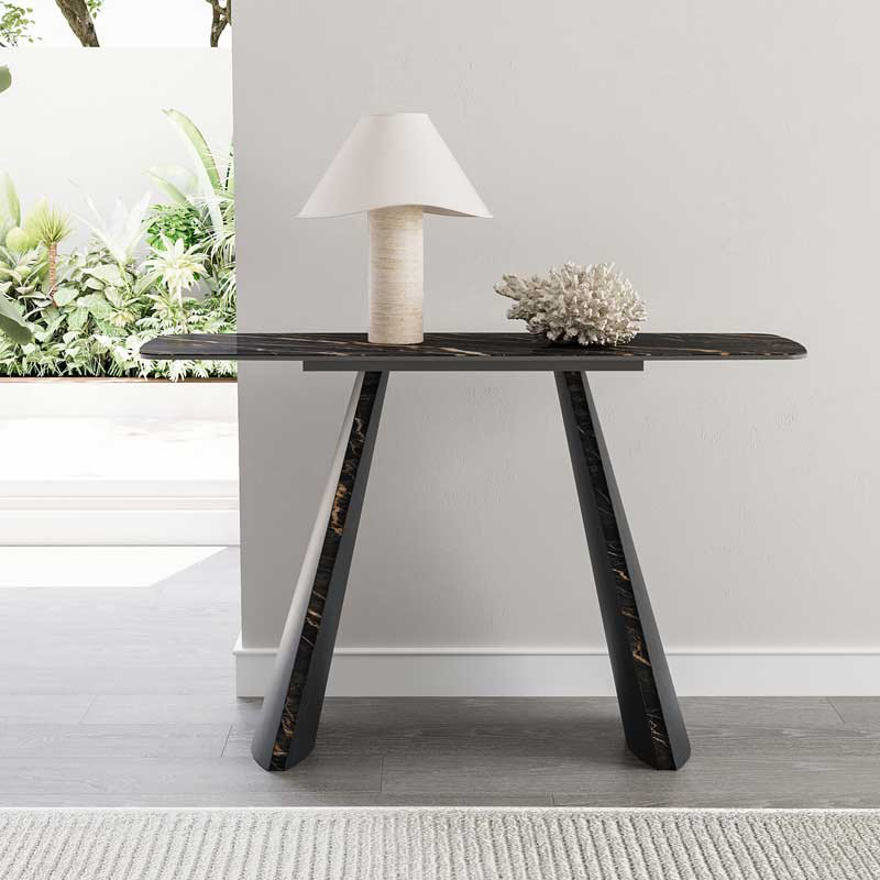 La console Léa est idéale pour ceux qui recherchent un meuble design et fonctionnel pour aménager leur entrée ou leur salon. La console LEA présente un design contemporain et épuré. Ses lignes sont droites et anguleuses, créant une silhouette à la fois moderne et intemporelle. Le piétement apporte une touche d'originalité. La combinaison du noir de la céramique et du noir brossé du métal crée un effet visuel saisissant.