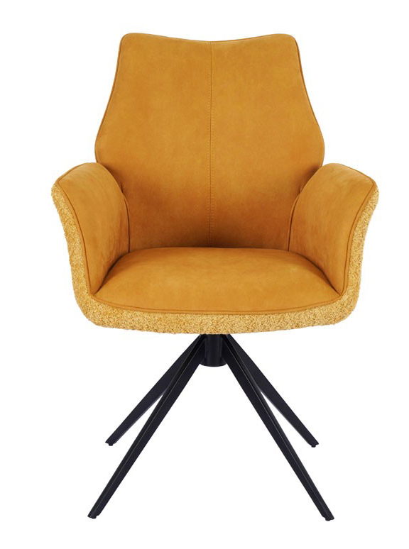 AG Products Albert Galea Réf. HD81467S - Confort et élégance Dimensions : l 64 x h 53 x p 60 cm Exprimez votre style avec notre mobilier contemporain et original. Découvrez dans notre gamme le Lot de 2 fauteuils pivotants ELISA safran qui vous séduira par son confort et la simplicité de son design. Pieds en métal laqué époxy noir, système pivotant à 360 avec retour automatique, assise et dossier en tissus polyester sur mousse densité 28kg, dos en tissu bouclé safran 270. Disponible en couleur assortie : bleu 330, curry 260, gris 454, safran 270. Matières : métal - tissus Couleurs : Safran fauteuil pivotant