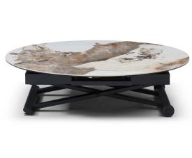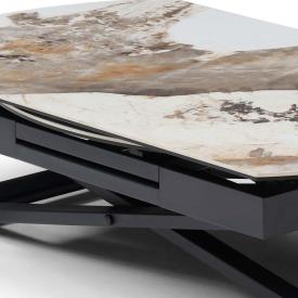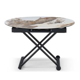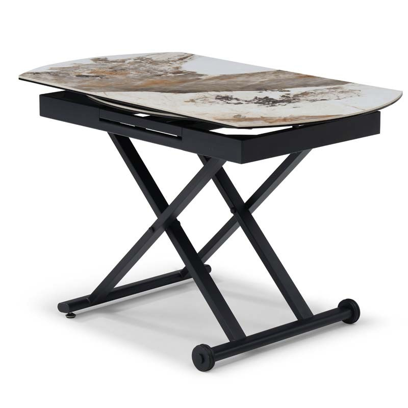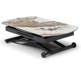 Pour des repas conviviaux même dans un petit espace, découvrez dans notre gamme de x la Table relevable STAND UP Pandora qui vous séduira par sa praticité. Spécialement conçue pour s'adapter à tous les espaces grâce à sa modularité. D'un simple geste transformez cette table basse en table repas avec rallonges incorporées. Piétement et châssis en métal laqué époxy noir, plateau et allonges en céramiques 6mm collé sur verre 6mm. Céramiques disponibles : Cold Jade, Pandora, Travertin