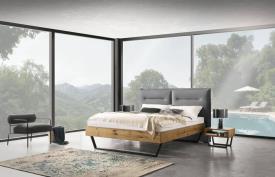 Le lit en bois massif Marisa allie de manière remarquable des matériaux nobles à un design moderne. Les robustes patins métalliques procurent au lit une légèreté aérienne, tandis que la majestueuse tête de lit, évoquant un luxueux panneau mural, assure une présence imposante dans la pièce. Chaque détail est travaillé avec soin et respire l'exclusivité.