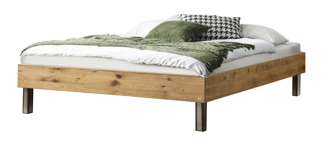 Hasena Dimensions : 90/.../200 x 200 cm Le lit Senza est synonyme de force pure et de design minimaliste. Sans tête de lit, il se réduit à l'essentiel et confère à votre chambre à coucher une élégance claire et discrète. Le cadre en bois massif combiné à des pieds en métal robustes crée une base puissante qui garantit stabilité et longévité. Pour les minimalistes qui apprécient l'esthétique haut de gamme et la beauté fonctionnelle, Senza est plus qu'un lit, c'est un chef-d’œuvre. Parties en bois 99-chêne noueux, huilé, parties en métal 45-iron Hauteur de pied : 20 cm, 25 cm Hauteur du cadre/profondeur d'insertion : 18 cm