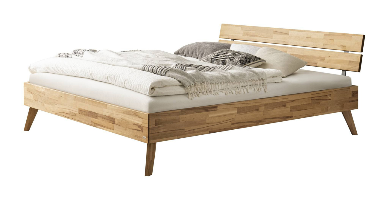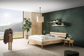 Le lit Valeria brille par ses lignes droites et sa touche de style Japandi. La tête de lit sculptée dans le même bois que le cadre du lit - légèrement inclinée pour s'y appuyer - s'intègre harmonieusement dans l'ensemble. Les pieds coniques et orientés vers l'extérieur laissent imaginer l'impression de solidité du lit.
