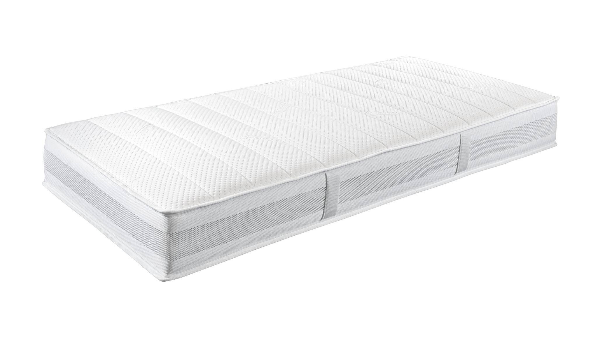 Son noyau en mousse EvoPore HRC de haute qualité est complété par des plaques de mousse Watergel qui apportent fraîcheur et soulagement de la pression. Avec 7 zones, une adaptation des épaules, une zone centrale renforcée et un soutien lombaire, il offre une stabilité précise. Fabriqué en Suisse et disponible en trois degrés de fermeté ainsi qu’avec l’option twin. Il est disponible en version « Drell » avec une housse de matelas blanche, lavable à 60 °C en cycle délicat et donc adaptée aux personnes allergiques. En alternative, il est proposé en version « Tex », avec un revêtement latéral rembourré décliné dans de nombreux matériaux et coloris. Cette version n’est pas lavable, mais elle permet d’harmoniser parfaitement l’aspect de la box et de la tête de lit.