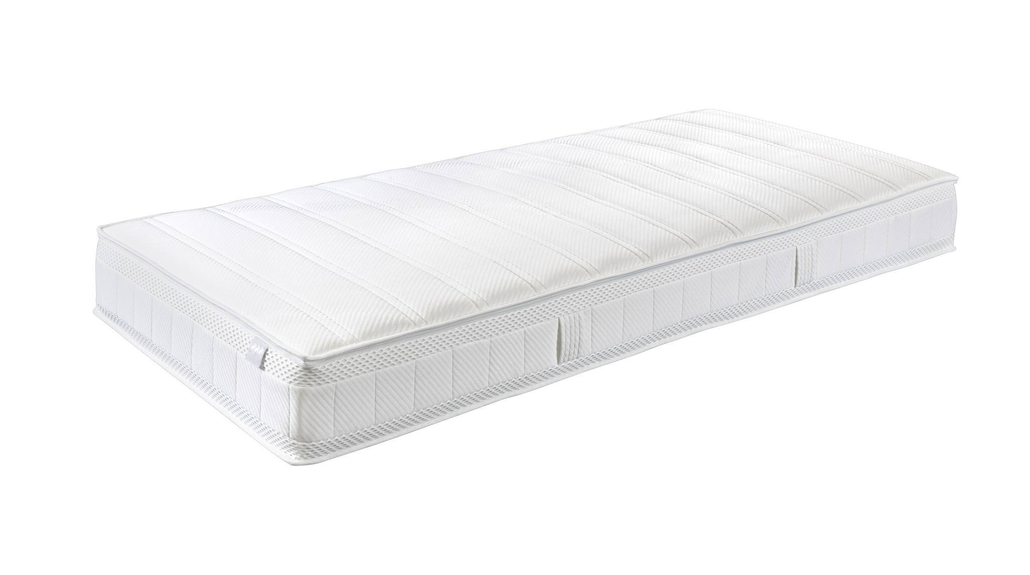 Avec 1 000 ressorts ensachés individuellement dans son noyau à ressorts ensachés 7 zones, il s’adapte parfaitement et garantit un sommeil silencieux. Un revêtement Gel-feel assure la climatisation et un grand confort, tandis que la zone centrale renforcée accroît la stabilité. Trois degrés de fermeté et l’option twin le rendent particulièrement polyvalent. Il est disponible en version « Drell » avec une housse de matelas blanche, lavable à 60 °C en cycle délicat et donc adaptée aux personnes allergiques. En alternative, il est proposé en version « Tex », avec un revêtement latéral rembourré disponible dans de nombreux matériaux et coloris. Cette version n’est pas lavable, mais elle permet d’harmoniser parfaitement l’aspect de la box et de la tête de lit.