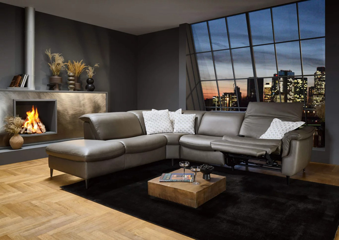 Hukla Confort et forme en parfaite harmonie Dimensions : l 256 x h 82/84/102/104 x p 287 cm Un canapé qui séduit par la pureté de ses lignes et l'équilibre harmonieux des volumes et proportions. Des surfaces de rembourrage douces en cuir lisse créent une silhouette moderne et rectiligne qui convient aussi bien aux intérieurs classiques que contemporains. Les lignes stylées alliées à la fonctionnalité bien pensée font de ce meuble un foyer de détente en toute élégance. - Réglage de l'appuie-tête, en option également motorisé - Fonction WallAway pour une installation au plus près du mur - Repose-jambes motorisé pour plus de liberté de mouvement - Vaste choix de types de canapés, fauteuils, sofas et éléments d'angle - Batterie optionnelle pour une utilisation sans fil canapé relax et relaxation