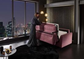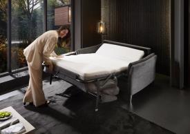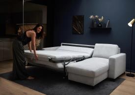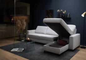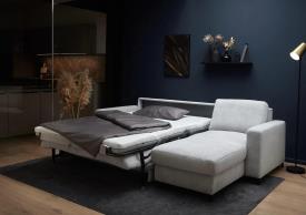 Hukla Convertible avec style Dimensions : l 176/196/216 x h 87 x p 100 cm Le concept de canapé-lit idéal de HUKLA. En quelques gestes, un canapé confortable se transforme en couchage douillet – parfait pour vous ou vos invités. Que ce soit dans des espaces de vie réduits, dans une chambre d'amis ou dans un logement de vacances, le canapé-lit HUKLA convainc toujours par son confort exceptionnel, invitant à la rêverie. - 2 hauteurs d'assise différentes - 3 largeurs de couchage différentes - 2 sommiers différents - Accoudoir avec position de repos - Appuie-tête à étrier enfichable - 5 modèles de pieds différents