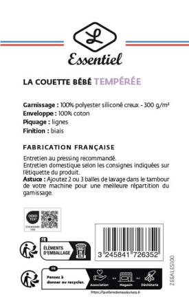 Garnissage : 100% polyester Siliconé Creux 300 g/m²