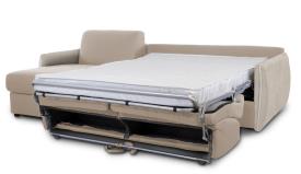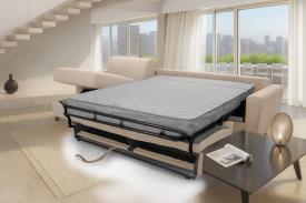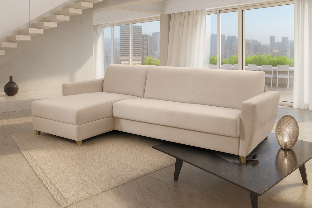 Mondosofa Le canapé-lit angulaire BL009 de style moderne est doté d'accoudoirs fins et de bordures décoratives contrastées.