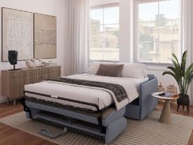 Mondosofa Le canapé-lit BL011 est conçu avec des accoudoirs étroits similaires à ceux du BL009, offrant une solution élégante et fonctionnelle pour économiser de l'espace. Dimensions : l 155/175/195 x h 87 x p 100/210 cm Ce choix permet de maximiser l'espace intérieur sans augmenter la taille globale. La seule différence réside dans la hauteur du matelas. STRUCTURE: bois at dérivés REMBOURRAGE: polyuréthane expanse à densités diversifiées (densité assise: 30 kg/m3, densité dossier: 21 kg/m3) REVETEMENT: tissu ou cuir SYSTÈME-LIT: sommier électro soudé double pliage avec matelas H14/18/20 cm en tissu jacquard/stretch canapé lit