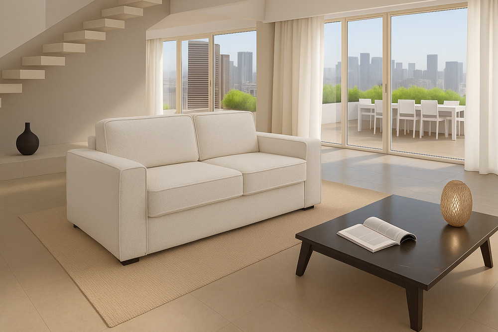 Mondosofa Le canapé-lit Paola A allie élégance et fonctionnalité, avec une assise confortable et un lit qui s'ouvre facilement, idéal pour s'asseoir confortablement sans sacrifier le style.