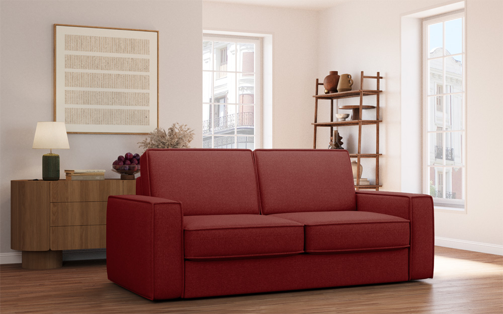 Mondosofa Le canapé-lit Pathos est un modèle de design élégant et accueillant, conçu pour offrir confort et style. Dimensions : l 180/200/220 x h 90 x p 100/210 cm Caractérisé par des lignes douces et un rembourrage généreux, il se distingue par la profondeur de son assise et la qualité de sa fabrication. STRUCTURE: bois et dérivés REMBOURRAGE: polyuréthane expansé à densités diversifiées (densité assise: 30 kg/m3), dossier en ouate de polyester REVËTEMENT: tissu ou cuir SYSTÈME-LUT: sommier électro soudé double pliage avec matelas H14 cm en tissu jacquard/stretch PIEDS: plastique, bois ou métal canapé lit