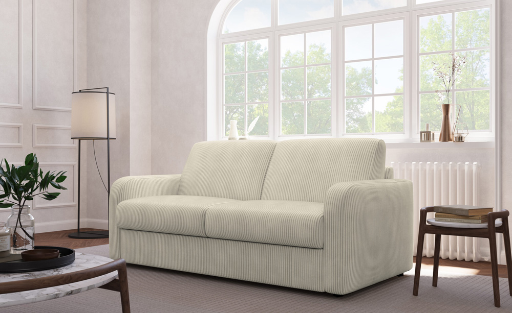 Mondosofa Le canapé-lit Tom a des lignes simples et modernes. Dimensions : l 165/185/205 x h 87 x p 100/210 cm Il se transforme facilement en un lit confortable, idéal pour les invités ou les petits espaces. Il est doté d'un cadre robuste, d'un rembourrage ergonomique et de housses disponibles dans différents tissus et couleurs pour s'adapter à tous les environnements. STRUCTURE: bois et dérivés REMBOURRAGE: polyuréthane expansé à densités diversifiées (densité assise: 30 kg/m3, densité dossier: 21 kg/m3) REVÊTEMENT: tissu ou cuir SYSTÈME-LIT: sommier électro soudé double pliage avec matelas H14 cm en tissu jacquard/stretch PIEDS: plastique, bois ou métal canapé lit