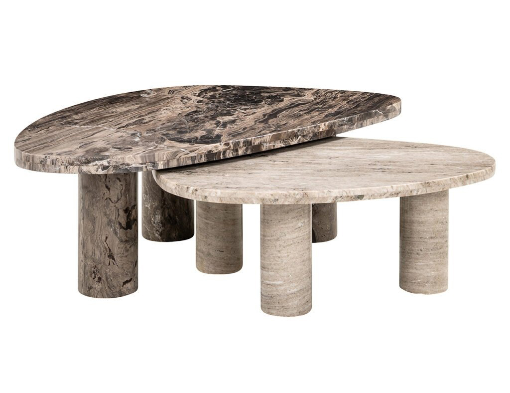 Table basse Nazario set van 2 (Brown) - Réf. 8691 Dimensions : l 121,5 x h 39 x p 73 cm Caractéristiques Matériau : marble Morchana, marble cappuccino indien Couleur : Marron table basse