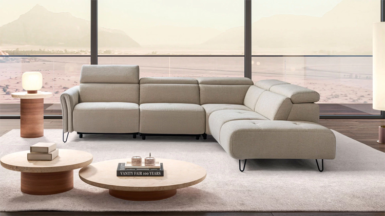 Suffa Design Canapé aux formes arrondies et élégantes Dimensions : l 216/.../299 x h 76/96 x p 170/215/232/242 cm Formes Arrondies et Élégantes Le canapé Ginzo se distingue par son élégance unique, présentant des formes arrondies et sophistiquées qui ajoutent une touche de charme à votre salon. Son design attrayant et contemporain valorise l’espace, offrant un endroit accueillant pour se détendre et socialiser. Personnalisez selon votre style Avec le canapé Ginzo, la personnalisation est à portée de main. Offrant diverses options de configuration, vous pouvez choisir parmi une variété de tissus et de couleurs pour créer un canapé unique qui s’adapte parfaitement à votre style et à l’ambiance de votre maison. Laissez libre cours à votre créativité et transformez votre espace selon vos goûts. Avec les options canapé 3 places, canapé 2 places, maple, chaise longue ou méridienne, vous aurez forcément des options pour assortir votre salon. Option Canapé Relax ou Fixe Adaptable à vos besoins, le canapé Ginzo propose l’option relax ou fixe. Avec l’option relax, vous pouvez profiter de moments de repos et de tranquillité. Avec ses formes arrondies et élégantes, le modèle Ginzo se distingue comme le choix idéal pour votre salon. Sa sophistication et son design attrayant apportent une touche unique et contemporaine à l’espace. Personnalisez votre canapé selon vos goûts ! Avec plusieurs options de configuration, choisissez parmi différents tissus et couleurs pour créer un canapé unique qui s’adapte parfaitement à votre style et à l’ambiance de votre maison. Choisissez le confort qui s’intègre parfaitement à votre quotidien. Avec l’option relax, notre canapé offre une polyvalence pour répondre à vos préférences et garantir des moments de détente. caractéristiques Têtières : inclinables à 120º – manuel par système de crémaillère Structure : structure en pin, contreplaqué et aggloméré Pieds : métal peint Assises : ressorts NOSAG recouverts de feutre, mousse polyuréthane HR densité 55 Kg recouverte de fibre 250 g/m² Dossiers : mousse polyuréthane HR densité 25 Kg recouverte de fibre 250 g/m² Accoudoirs : mousse polyuréthane HR densité 23 Kg recouverte de fibre 250 g/m² Garantie : 3 ANS