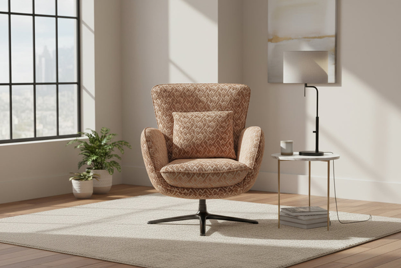 Suffa Design Dimensions : l 83 x h 98 x p 93 cm Le fauteuil VERONA se distingue par son design élégant et enveloppant, avec des lignes fluides qui offrent confort et une présence sophistiquée dans n'importe quel environnement. Il peut être fabriqué à partir de n'importe quel type de matériau, du tissu au cuir, permettant une personnalisation complète des finitions et des styles. Les mousses à haute résilience assurent un excellent soutien, un confort durable et une bonne tenue de forme au fil du temps. Assise et dossier ergonomiques, conçus pour offrir un confort équilibré au quotidien. Socle rotatif qui ajoute de la fonctionnalité et une liberté de mouvement. Structure robuste et finitions de qualité, garantissant durabilité et stabilité. caractéristiques Structure : Cadre en pin, contreplaqué et panneaux de particules. Pieds : Bois peint Sièges : ressorts NOSAG recouverts de feutre, mousse de polyuréthane HR d'une densité de 55 kg recouverte de fibres de 250 g/m². Panneau arrière : mousse de polyuréthane HR d'une densité de 25 kg, recouverte de fibres de 250 g/m². Accoudoirs : mousse de polyuréthane HR, densité 23 kg, recouverte de fibres de 250 g/m². Garantie : 3 ANS