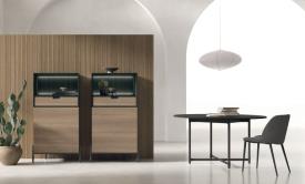 Tomasella Dimensions : l 205 x h 99 x p 51 cm Finitions photo / Buffet Time E en CDF noyer ambré, CDF noir veiné, CDF nacre. Piètement en métal anthracite 160. L 205 P 51 H 99 CM Buffet Time G en laque CDF vert mimétique mat 166. Piètement en métal vert mimétique 166. L 223 P 51 H 89 CM Buffet Time F Arena CDF et Arena CDF cannelé. Piètement métal anthracite 160. L 223 P 51 H 107 CM Buffet Time D en CDF noyer ambré cannelé, CDF noyer ambré, CDF noyer ambré cannelé, CDF Arena et CDF noir veiné. Piètement en métal anthracite 160. L 187 P 51 H 89 CM Buffet Time C en CDF nacre et basalte. CDF noir veiné. Piètement en métal anthracite 160. L 169 P 51 H 89 CM Buffet Time H en CDF noir veiné, CDF noyer ambré, CDF noyer ambré cannelé. Piètement en métal anthracite 160. L 79 P 51 H 125 CM Buffet Time M en CDF Arena et CDF noir veiné. Compartiment ouvert en CDF noir veiné cannelé avec éclairage LED. Piètement en métal anthracite 160. L 113 P 51 H 161 CM Buffets Time et CDF noyer ambré, nacre CDF. Piètement en métal fumé 128. L 113 P 51 H 125 CM Buffet Time L, Arena CDF. Compartiment ouvert en CDF noyer ambré, CDF noir veiné, CDF noir veiné cannelé. Piètement en métal anthracite 160. L 72 P 51 H 142 cm buffet Time A en CDF noir, CDF cannelé, CDF. Panneaux muraux laqués mats Tabasco 171. Piètement en métal anthracite 160. L 237 P 24/51 H 98 CM