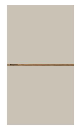 Portes coulissantes laquées blanc craie mat 121. Poignée en chêne clair à nœuds. Corps laqué blanc craie mat 121.