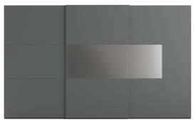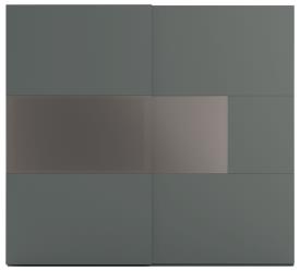 Portes coulissantes et corps en Marna texturé mat, insert central en verre Stopsol, moulures et poignées intégrées en métal Marna 180. Finition intérieure en toile texturée.